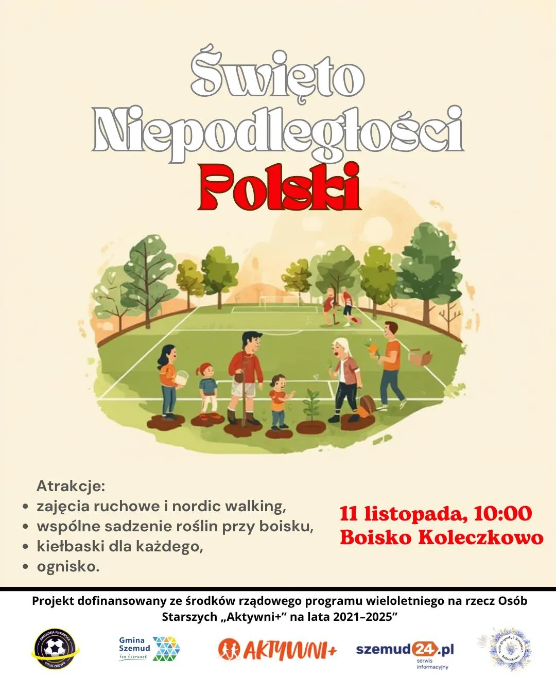 Mieszkańcy, którzy chcą aktywnie i rodzinnie uczcić Święto Niepodległości, są zaproszeni również na boisko w Koleczkowie. W ramach programu „Aktywni+” zaplanowano szereg bezpłatnych atrakcji, które łączą ruch, ekologię i integrację międzypokoleniową.
