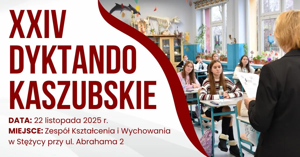 Zrzeszenie Kaszubsko-Pomorskie oraz Gmina Stężyca zapraszają do udziału w XXIV Kaszubskim Dyktandzie, jednym z najważniejszych konkursów promujących znajomość języka kaszubskiego. Hasło tegorocznych zmagań to: „Piszã Pò Kaszëbskù – Królewiónka w Pałacu”. Konkurs odbędzie się 22 listopada 2025 roku, a zmagania rozpoczną się o godzinie 8:30 w Zespole Kształcenia i Wychowania w Stężycy przy ul. Abrahama 2. Zgłoszenia do 14 listopada.