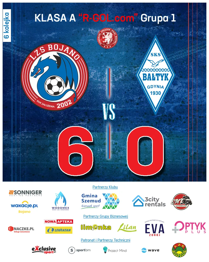 LZS Dragon Bojano w spektakularnym stylu pokonał Bałtyk II Gdynia, umacniając swoją pozycję lidera w 6. kolejce klasy A "R-GOL.com". Mecz odbył się 13 września na Dragon Arenie w Bojanie, był prawdziwym popisem formy gospodarzy.