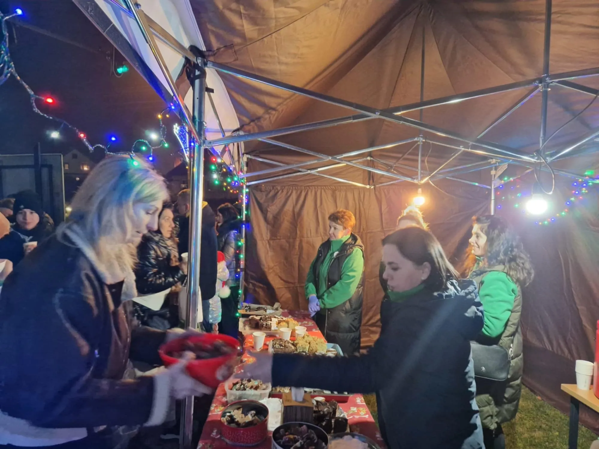 O pyszny poczęstunek dla wszystkich uczestników zadbały Panie z Koła Gospodyń Wiejskich "Koło na Wesoło". Wspólne rozświetlenie choinki stało się pięknym i hucznym wprowadzeniem mieszkańców Łebna w okres świąteczny.