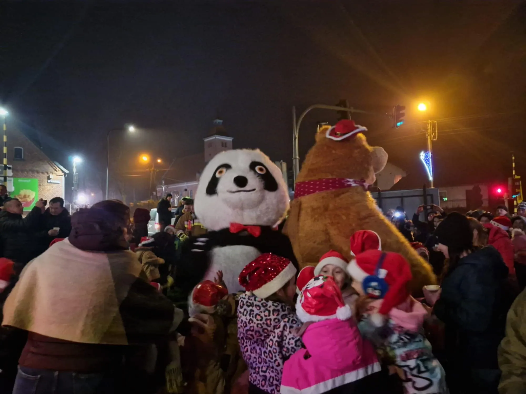 Wieczór upłynął w radosnej, muzycznej atmosferze. Dzieci i dorośli aktywnie brali udział we wspólnym śpiewie i tańcach dookoła choinki. Nie zabrakło też wyjątkowych gości! Wydarzenie odwiedzili pluszowi Pomocnicy Świętego Mikołaja. Duże, maskotki misia i pandy chętnie bawiły się z najmłodszymi, zapewniając mnóstwo radości.