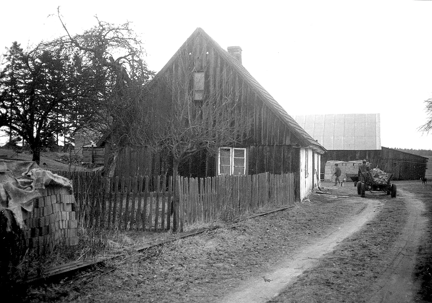 Po prawej A. Żychlińska, w głębi dom rodziny Loeper. 1954 r.